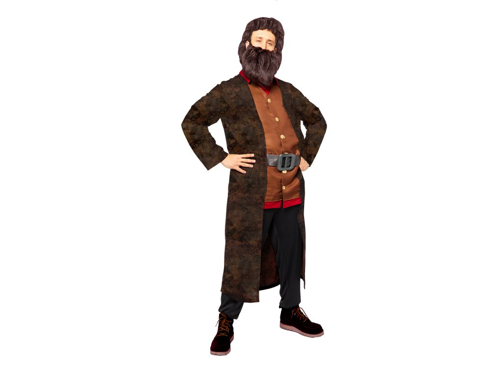 Detaily: Kostým obsahuje realistické detaily, ktoré verne stvárňujú Hagridovu postavu, ako sú imitácie kabátu s košeľou, opasok a bradu. Parochňa nie je súčasťou kostýmu.