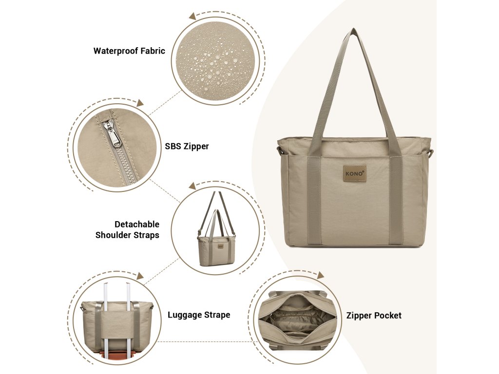 - 🌧 Vodoodpudivý materiál: Odolný nylon chráni obsah kabelky pred ľahkým dažďom aj nečistotami.