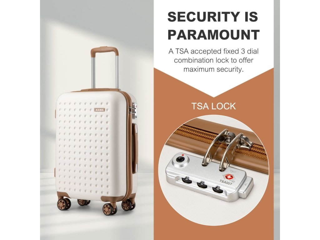 - 🔐 TSA zámok: Bezpečné uzamknutie obsahu s možnosťou kontroly letiskovou bezpečnosťou bez poškodenia kufra.