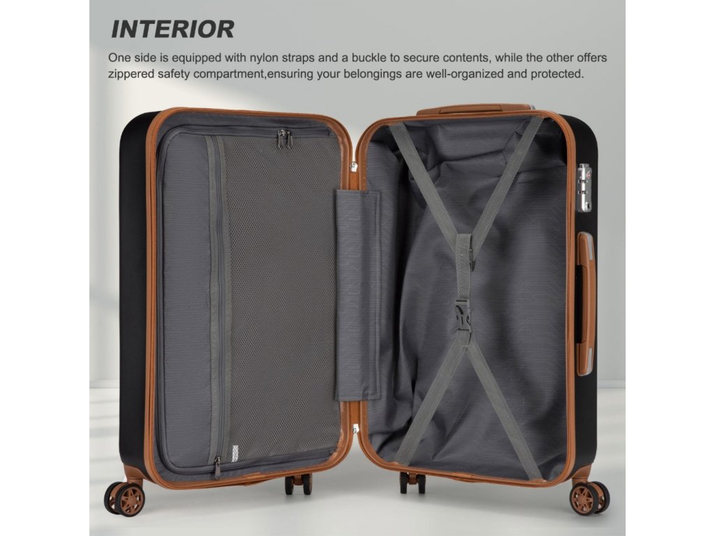 - 🔐 TSA zámok: Bezpečné uloženie obsahu s možnosťou letiskovej kontroly bez poškodenia kufra.