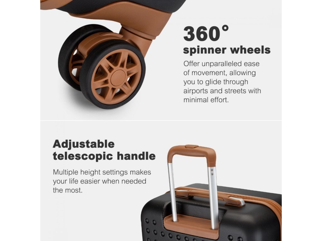Cestovný ABS+PC kufor Kono - čierno-hnedý - 56L