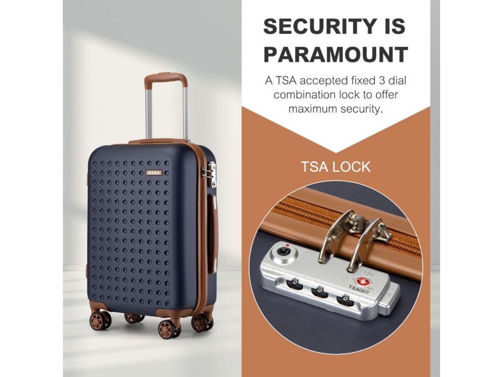 - 🔐 TSA zámok: Bezpečné uzamknutie obsahu s možnosťou kontroly letiskovou bezpečnosťou bez poškodenia kufra.