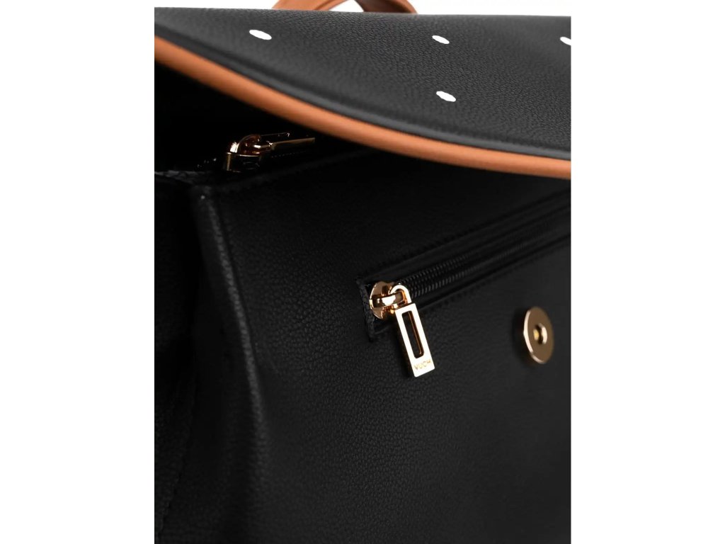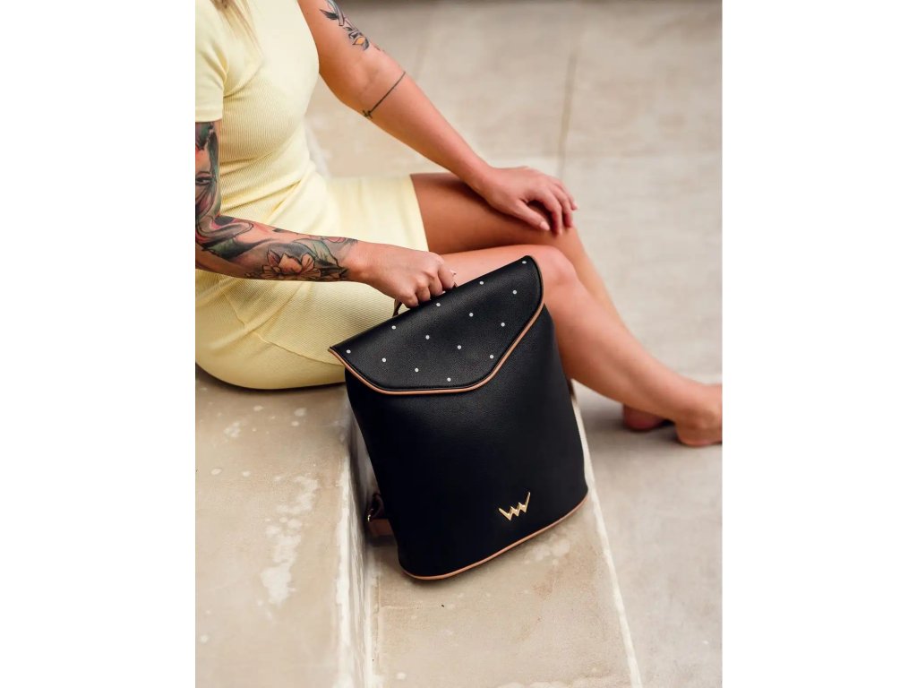 - ⚪ Bodkovaná klopa: Jemný vzor dodáva batohu hravosť a originálny charakter.