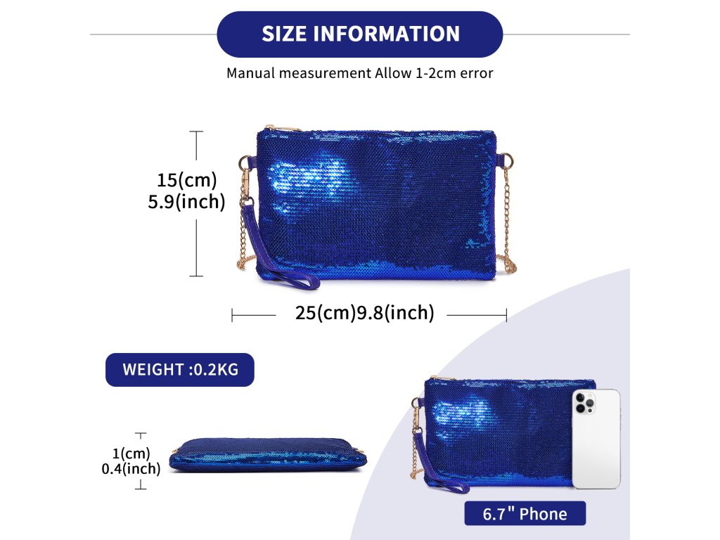 - 🌟 Luxusný flitrový povrch: Celá kabelka je zdobená jemnými flitrami, ktoré dodajú outfitu okamžitý glamour efekt.