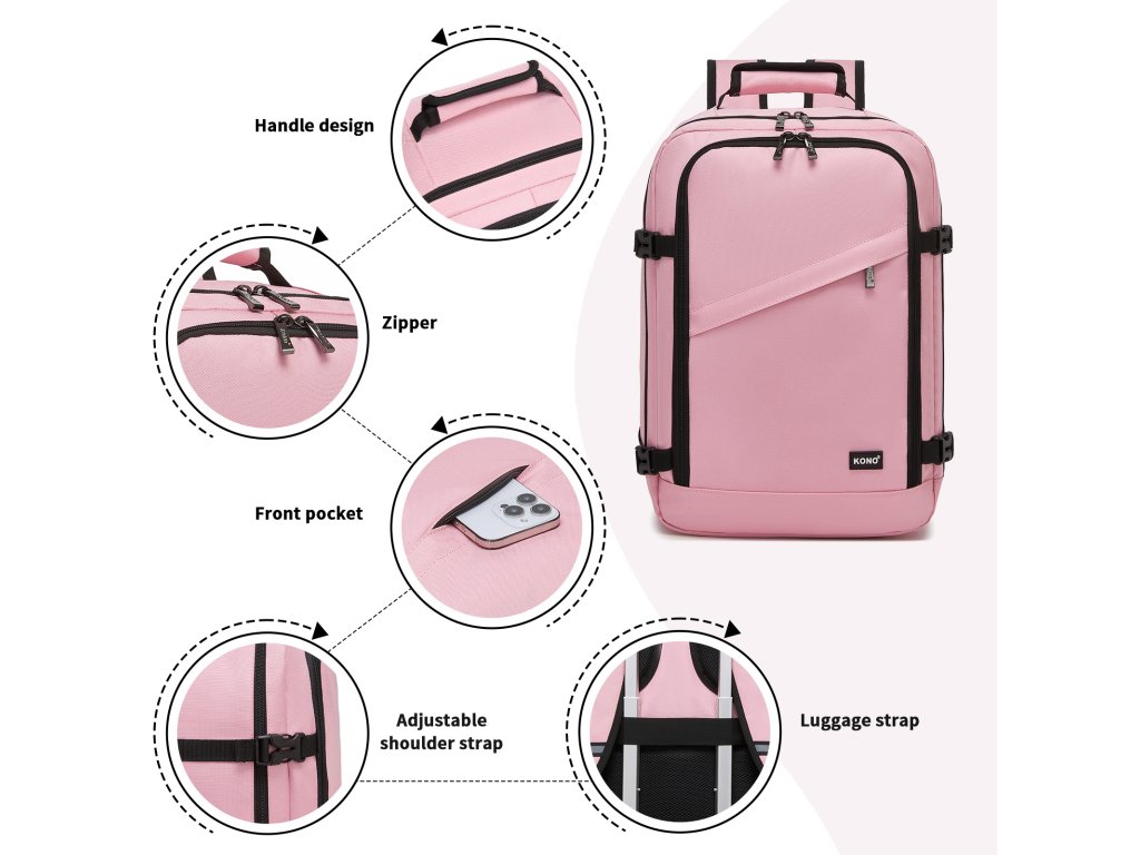Kabínový batoh Kono 24L - ružový - 30x20x40 cm