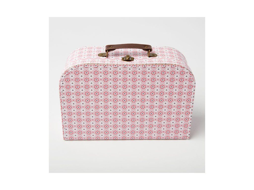 Praktický kartónový kufrík s koženkovým uchom vhodný ako dekorácia alebo ako školský box na potreby pre školákov.