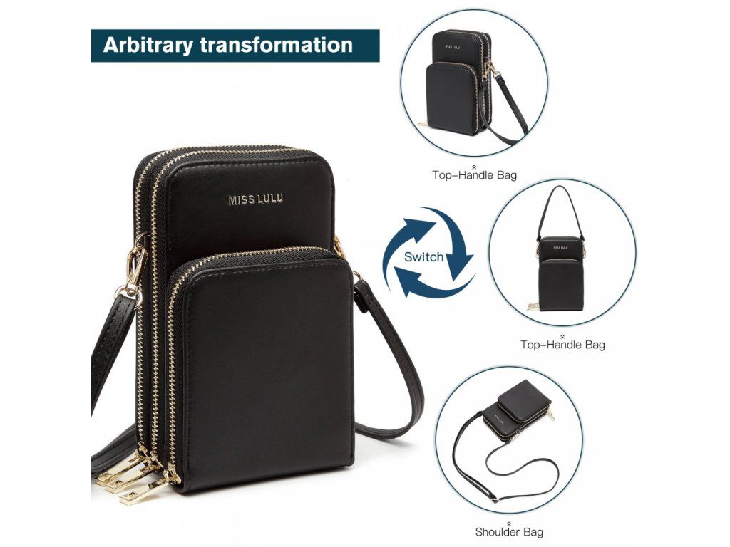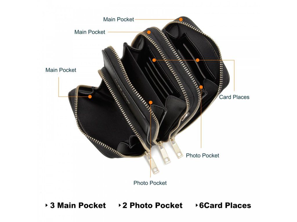 Táto kabelka má 3 hlavné vrecká, vrátane 6 miest na karty a má všestranné použitie- dá sa použiť buď ako taška krížom na telo, alebo ako taška s hornou rukoväťou.
