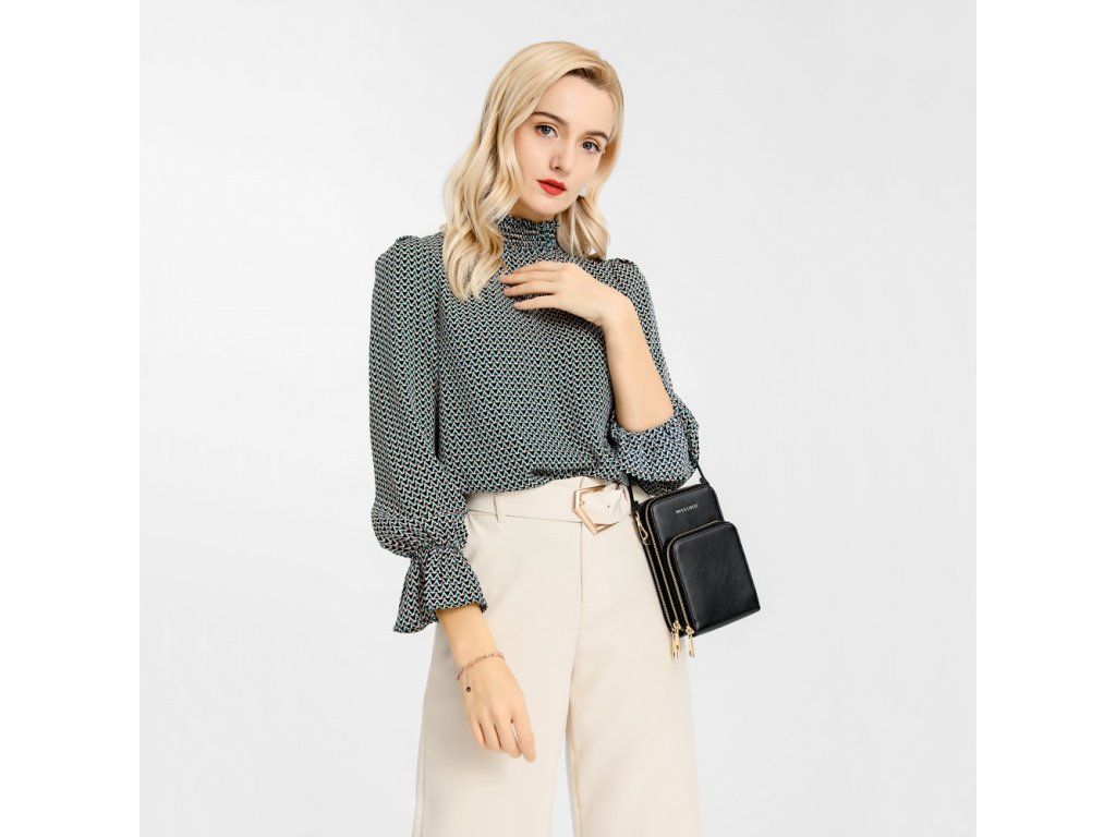 Kompaktná kabelka na mobil a zároveň peňaženka s popruhom na rameno v čiernom prevedení.