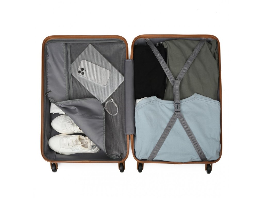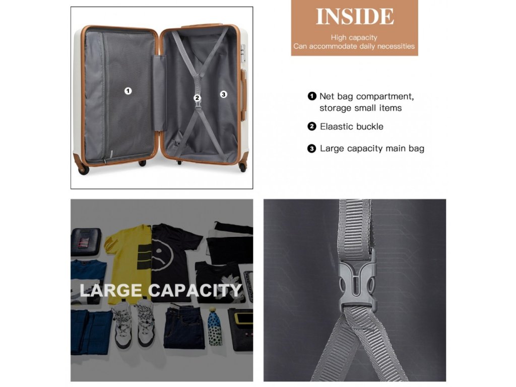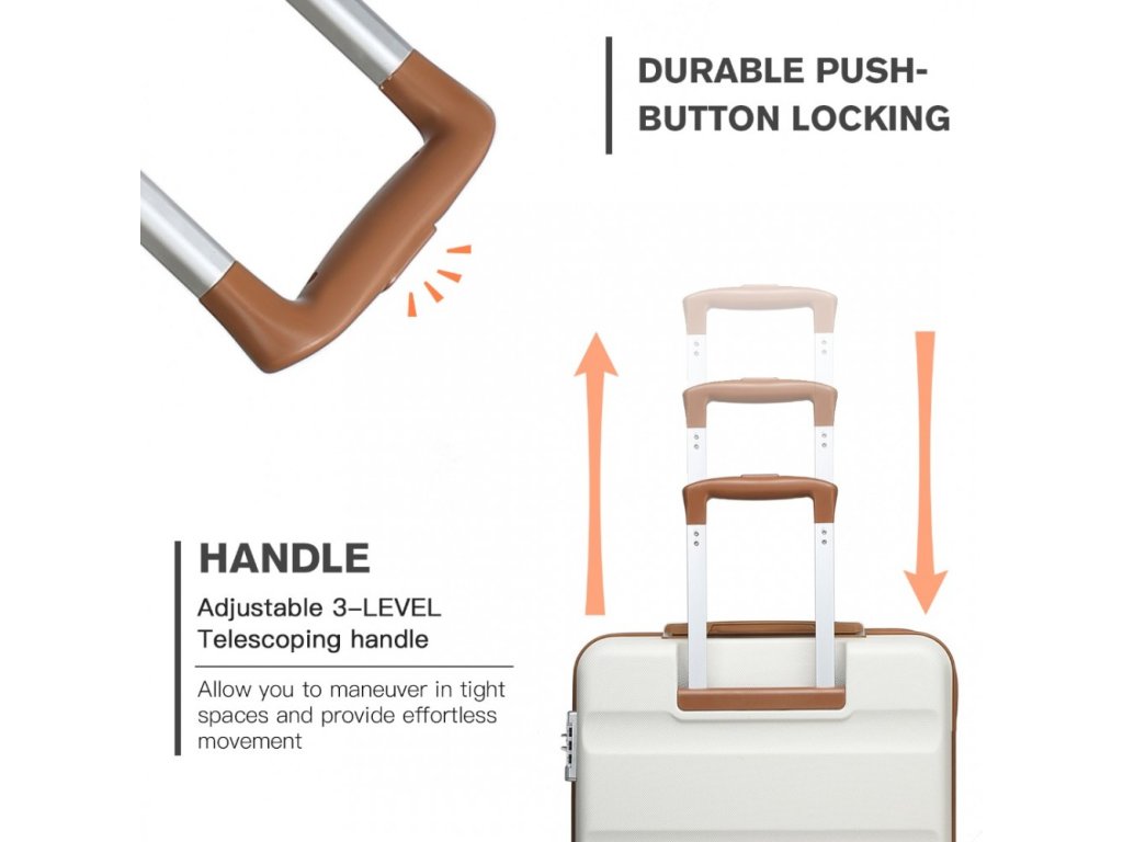 Kono 3dielna ľahká sada kufrov z ABS Hardshell - béžovohnedá - 38L/71L/100L