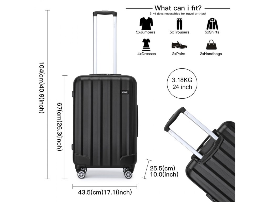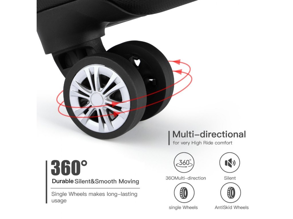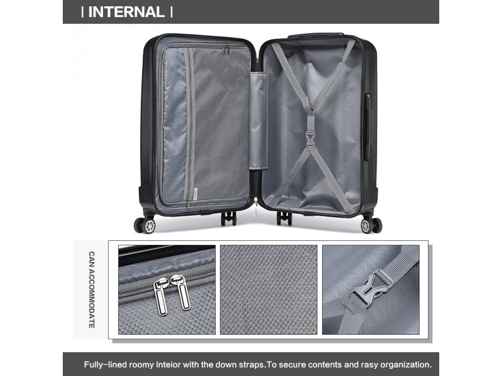 - Kufor je vyrobený z odolného materiálu ABS, vďaka čomu je ľahký a odolný.