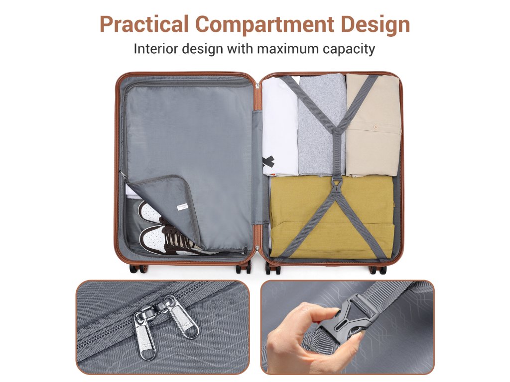 - 💼 Tri veľkosti na každú cestu: Kabínový, stredný aj veľký kufor pokryjú rýchly víkend aj dvojtýždňovú dovolenku.