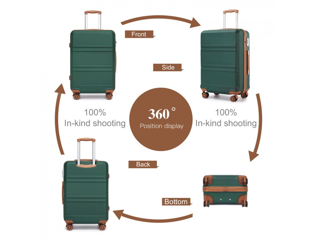 KONO Set 3 cestovných kufrov s horizontálnym designom - ABS - zeleno-hnedý - 44L/66L/96L