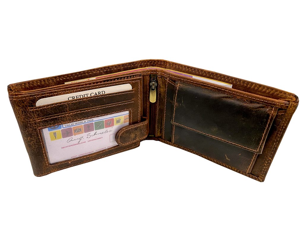 Luxusná pánska kožená peňaženka vyrobená z kvalitnej a pevnej pravej kože z dielnie Wild by Loranzo Nature v hnedej farbe so sublimovaným obrázkom motorky.