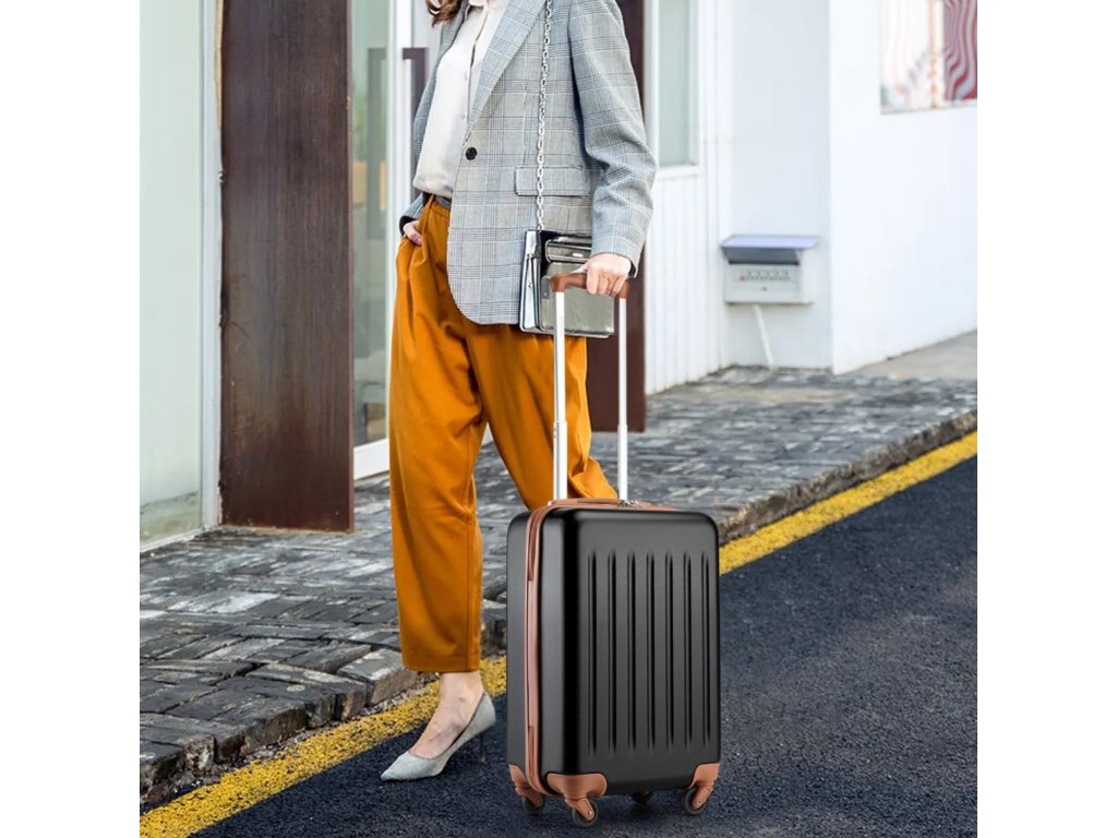 Ľahký kabínový ABS+PC kufor Kono - čierno-hnedý - 33 L