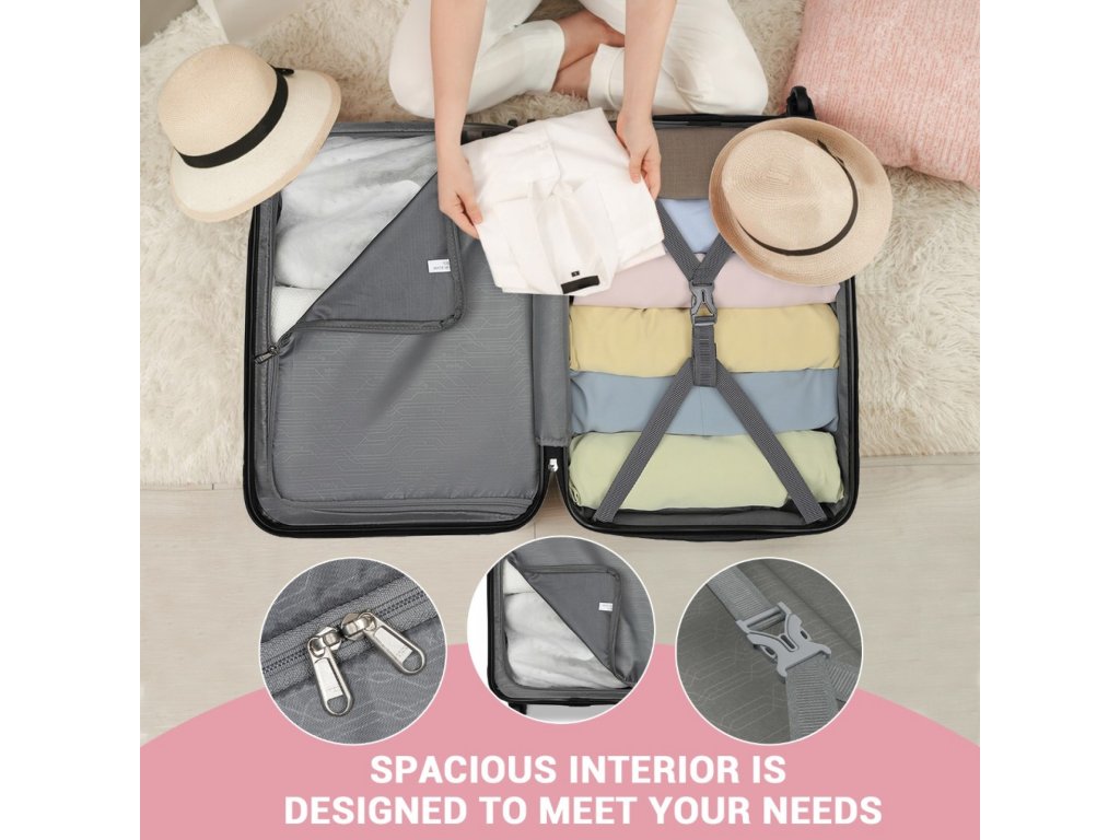 - 🛡 Odolný materiál ABS+PC: Kombinácia pevnosti a pružnosti chráni kufor pred nárazmi a zachováva jeho tvar.