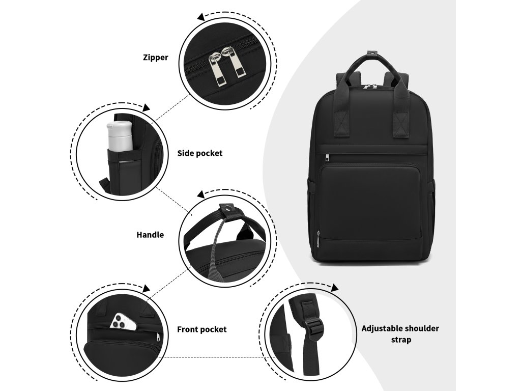 Či už mierite do práce, do školy alebo na víkendový výlet, tento batoh spája moderný dizajn, praktickosť a pohodlie. Vďaka premyslenému členeniu a elegantnému vzhľadu sa stane vaším spoľahlivým partnerom na cesty. 🖤