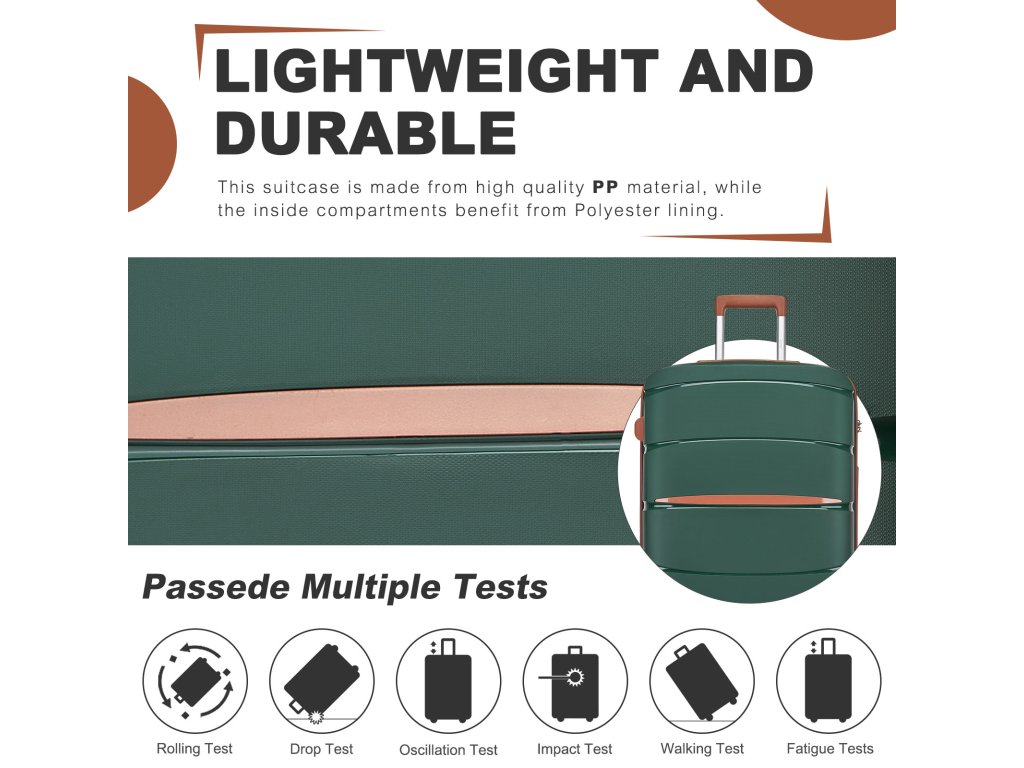Vďaka odolnému polypropylénu a elegantnému zelenému prevedeniu je kufor Kono skvelým partnerom pre každého cestovateľa. Zabezpečí bezpečie vašich vecí, jednoduchú manipuláciu a moderný vzhľad pri každom dobrodružstve. ✈️💼