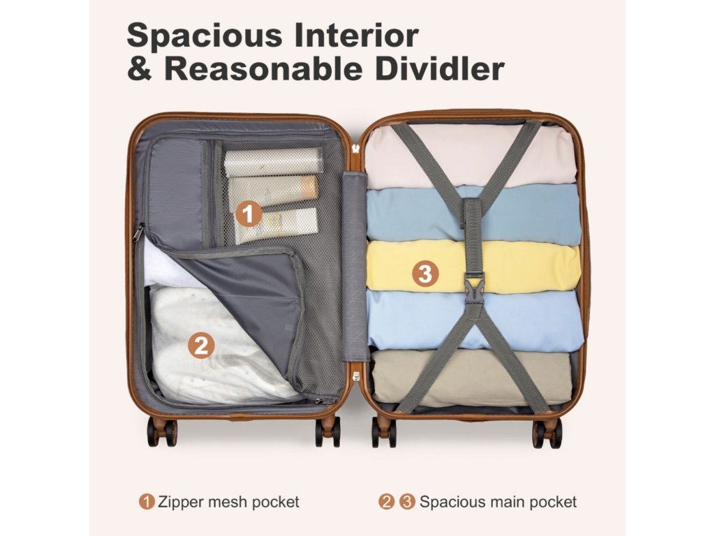 - 🔐 TSA zámok: Integrovaný TSA zámok zabezpečí ochranu Vašich vecí a umožní kontrolu batožiny letiskovou bezpečnosťou bez poškodenia.