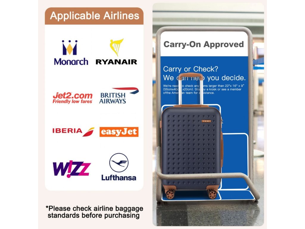 - Vhodný ako kabínová batožina pre väčšinu leteckých spoločností (napr. BA, EasyJet, Jet2.com).