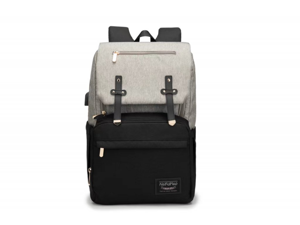 N.F.M. unisex prebaľovací batoh s USB portom - 22L - sivo-čierny - 15,6"
