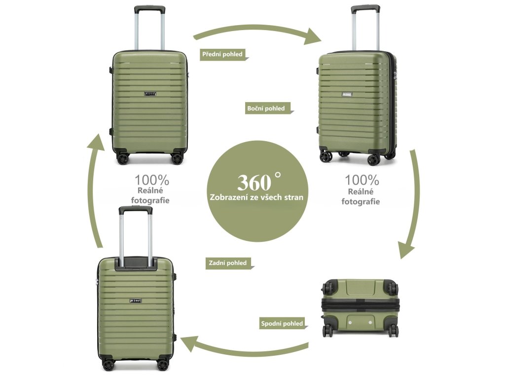 - Elegantný povrch s vertikálnymi pruhmi zvyšuje odolnosť proti poškriabaniu a dodáva kufru moderný vzhľad