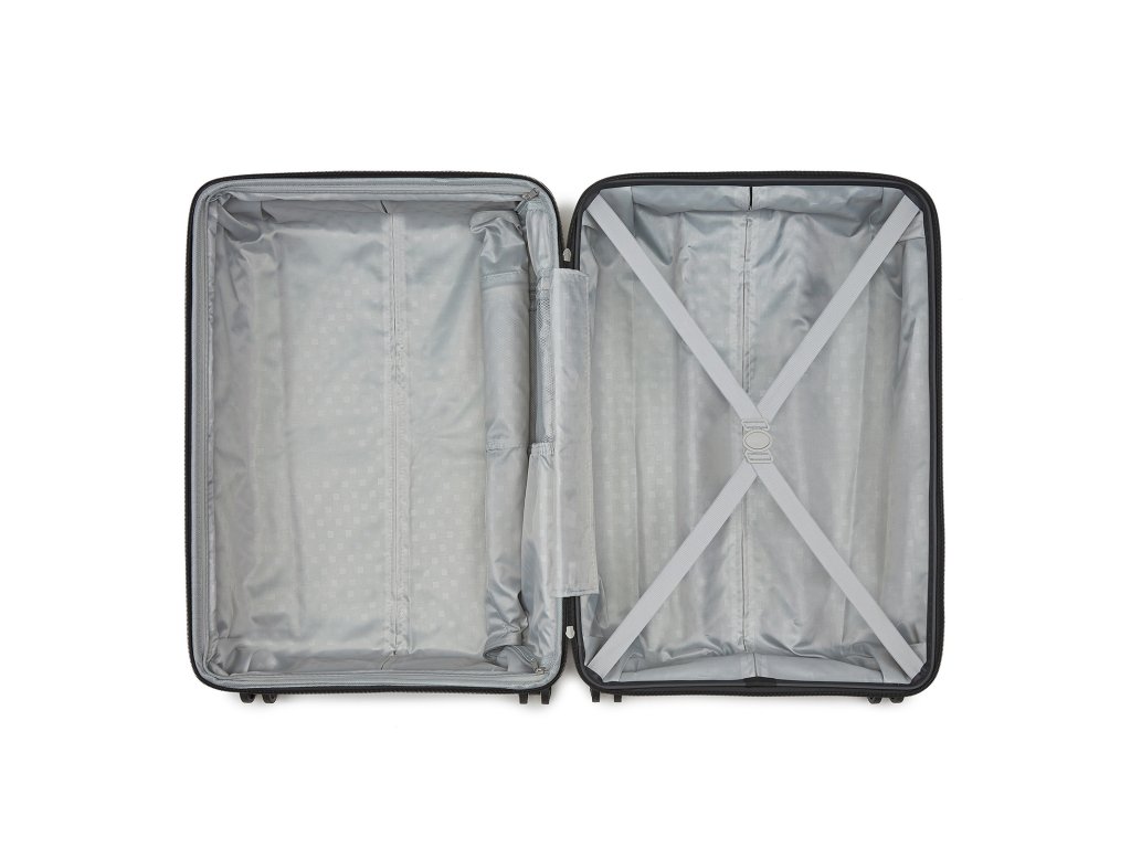 Vnútorné usporiadanie kufra ponúka premyslené riešenie pre prehľadné balenie. Jedna strana je vybavená sieťovaným vreckom a menšími priehradkami na drobnosti, druhá strana má krížové popruhy na zaistenie oblečenia. Všetko zostane úhľadné a prehľadné, aj keď je kufor úplne zaplnený.