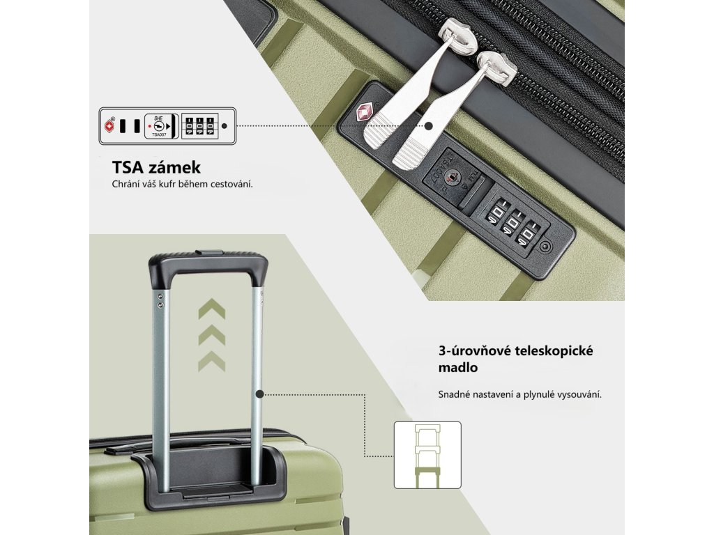 - TSA zámok pre bezpečné cestovanie bez poškodenia zámku pri kontrole