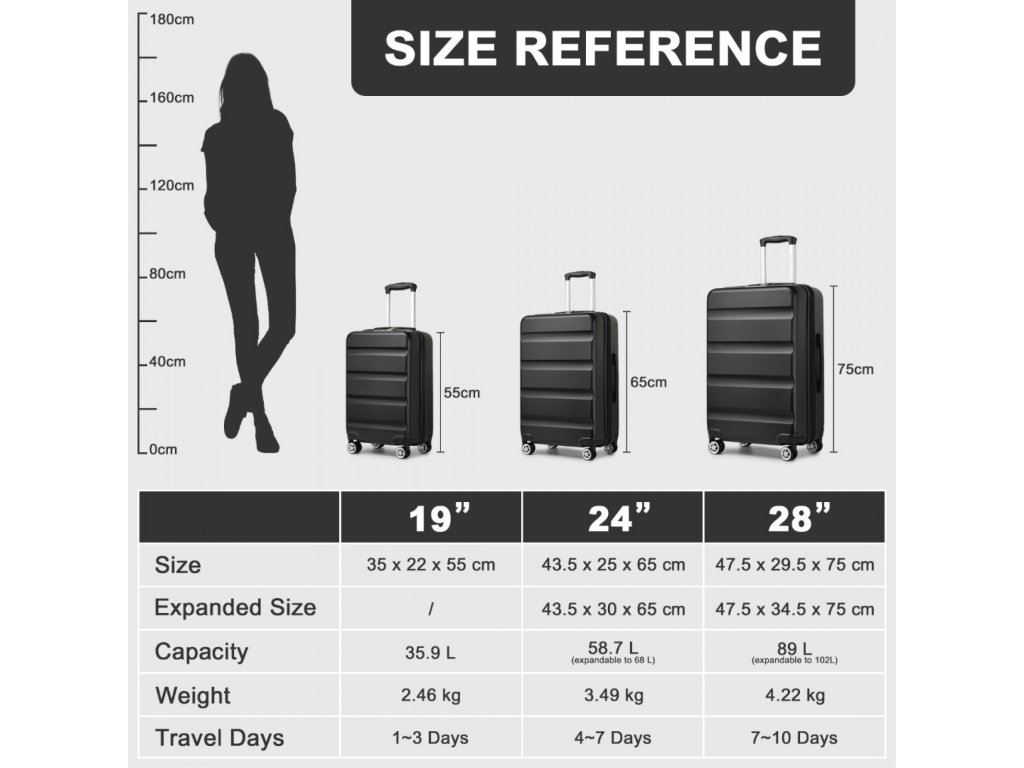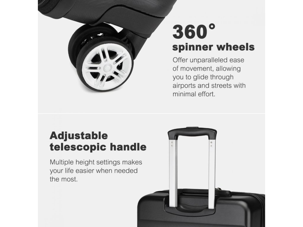 - 📦 Rozšíriteľný objem: Stredný a veľký kufor je možné pomocou zipsu rozšíriť približne o 5 cm do hĺbky.