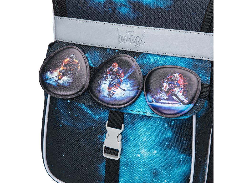 - 🏒 Vymeniteľné odznaky: Hokejové motívy sa dajú jednoducho obmieňať a dodať aktovke nový vzhľad.