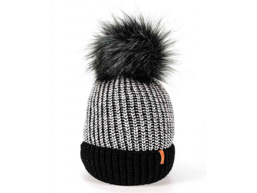 WroBi zimná dámska čiapka s veľkým brmbolcom - čierno strieborná